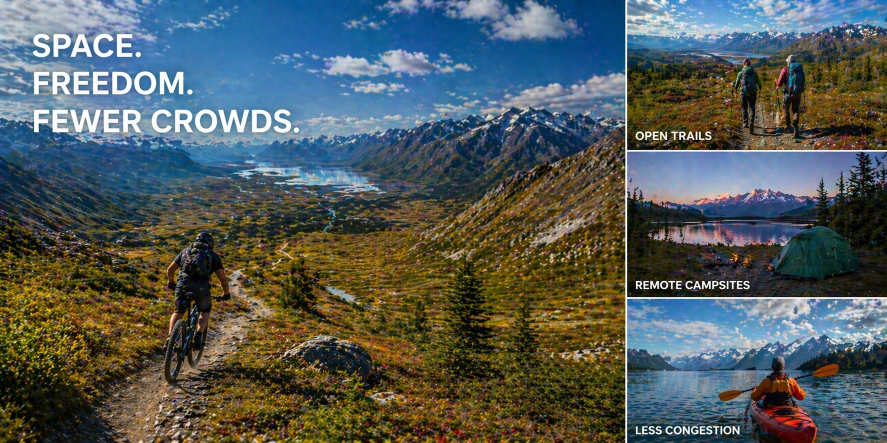 - Vast national parks like Denali and Wrangell-St. Elias